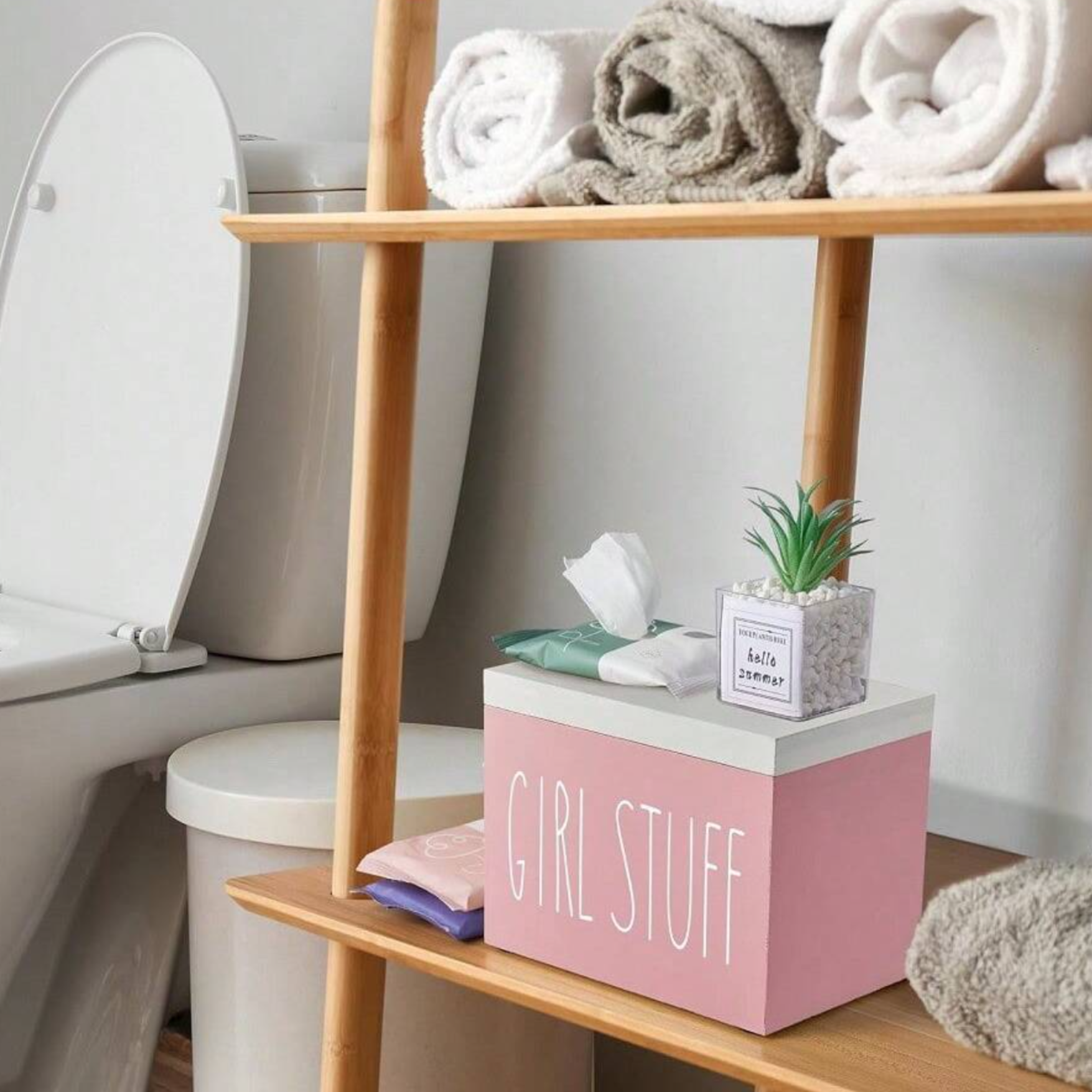 Pink Tampon and Pad Storage Box with Lid – Stylish Bathroom Organizer